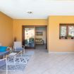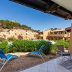 Un secondo terrazzo, arredato con tavolo, sedie e lettini, si affaccia direttamente sull’area piscina, distante pochi passi: il luogo ideale per trascorrere momenti all’aperto, tra sole e tranquillità.